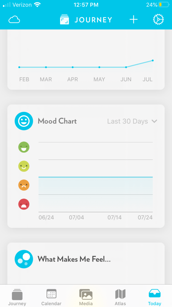 I’ve actually gotten quite attached to one app in particular, called Journey. Journey gives its users daily prompts and programs to follow, and even has a section where you can keep track of your mood and physical health statistics.